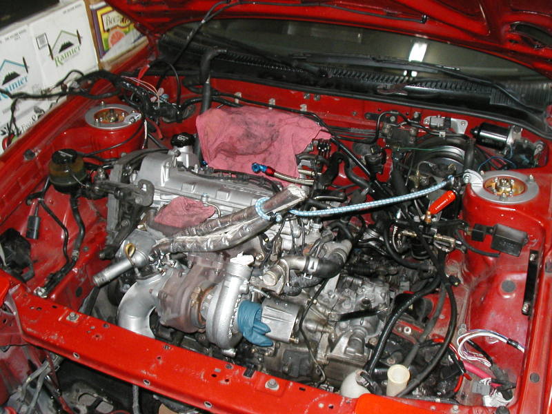 Oh ... my progress on getting the engine pulled.... I have most everything on top disconnected, except for the power steering lines. Underneath, the exhaust is removed, but the three driveshafts are still attached to the transmission. I need to drain the tranny fluid and the get the shafts pulled. Here are some pictures of the current state of things.